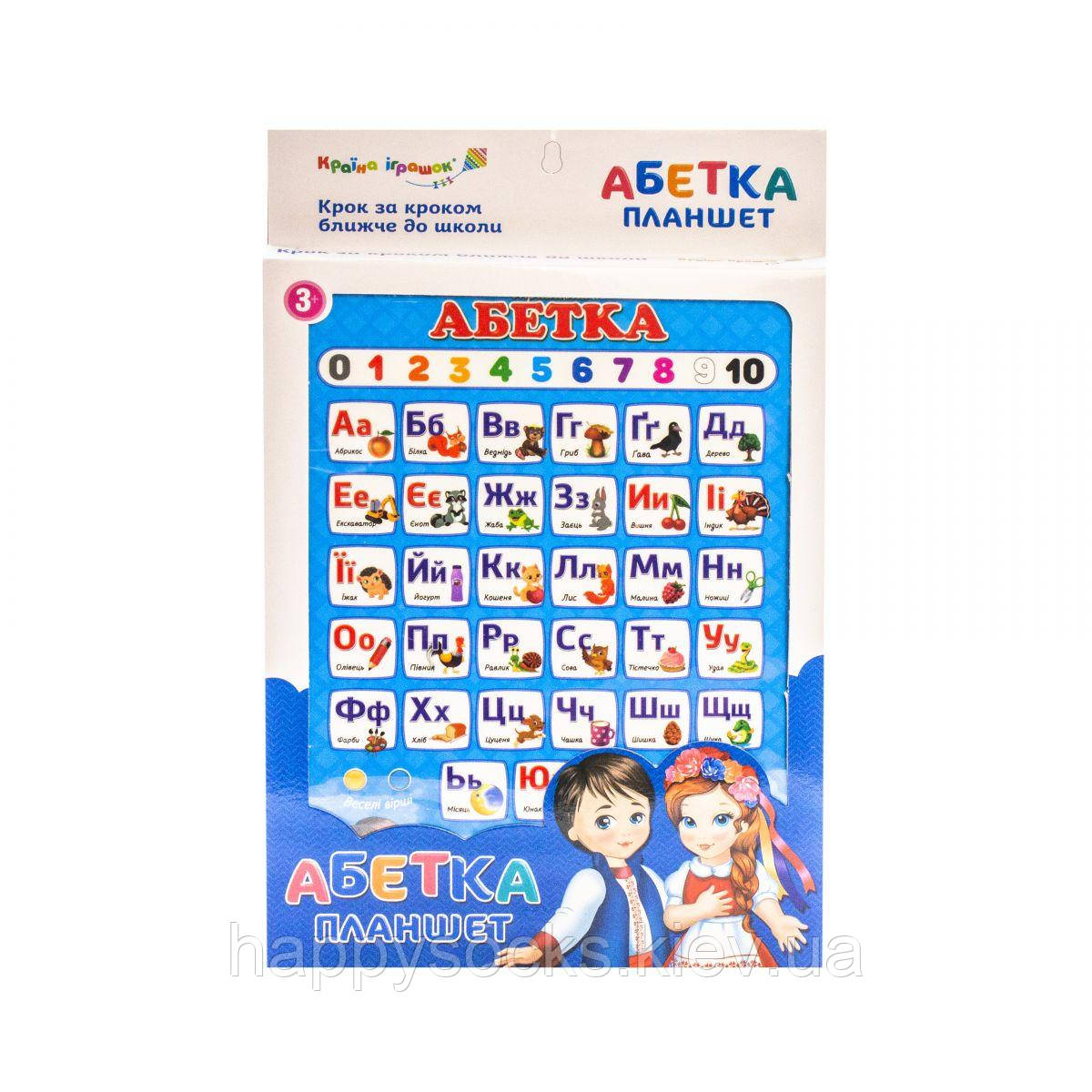 Планшет дає змогу співати веселі пісні, вивчати букви, слова та цифри. 3 режими: літери, слова та іспити. Гучність регулюється. українською мовою.