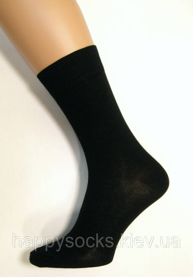 Шкарпетки чоловічі з бавовняної пряжі середньої щільності. Продукт виготовлений з бавовняної пряжі індійського виробництва з додаванням італійського еластану. Класична Модель з високим паголенком і широкої, еластичною, приємною, подвійний гумкою. Мисок і п'ятка посилені для зносостійкості. Шкарпетки добре тягнуться і не дають усадку після прання.