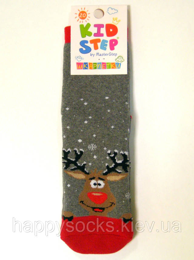 Бавовняні махрові дитячі шкарпетки з оленям темно-сірого кольору